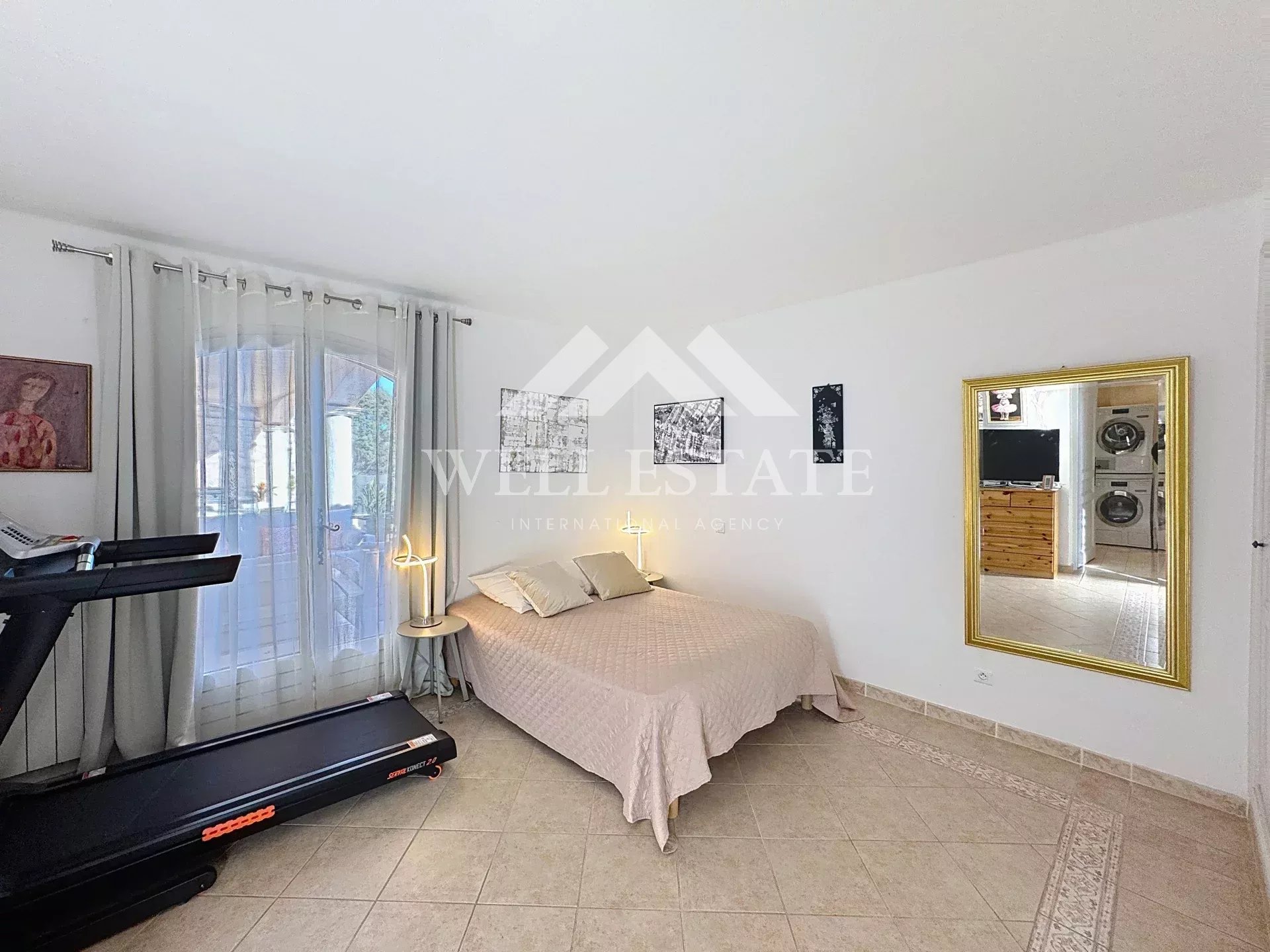 La villa propose deux grandes chambres de plain-pied avec salles de bains ou douches privatives, ainsi que trois chambres supplémentaires à l’étage, un bureau en tourelle, des combles aménagés et une pièce borgne complémentaire. La maison comporte deux niveaux qui peuvent fonctionner comme deux appartements indépendants. Chaque niveau dispose de sa propre cuisine, de son salon et de ses chambres, avec une entrée séparée et une terrasse indépendante.