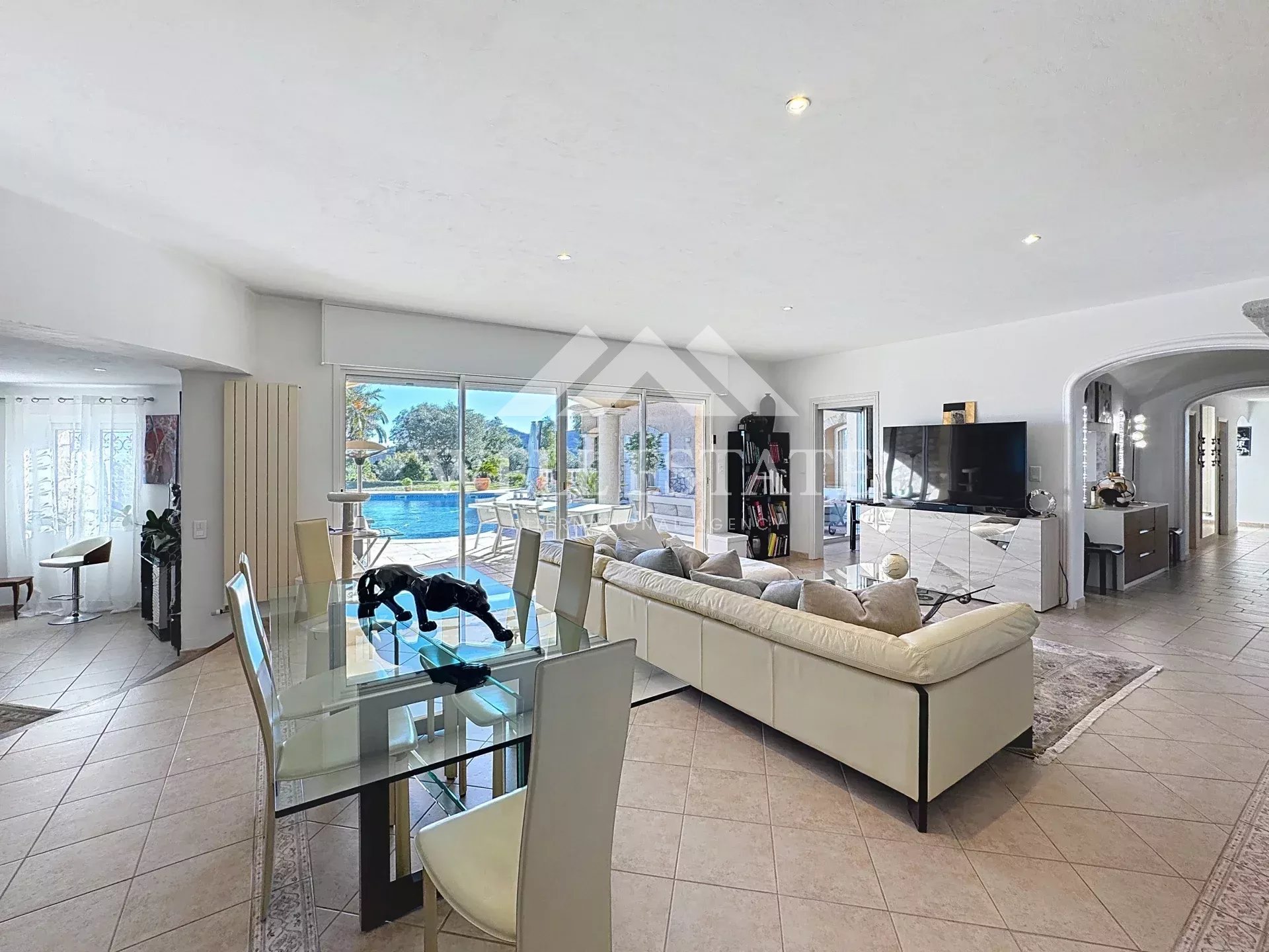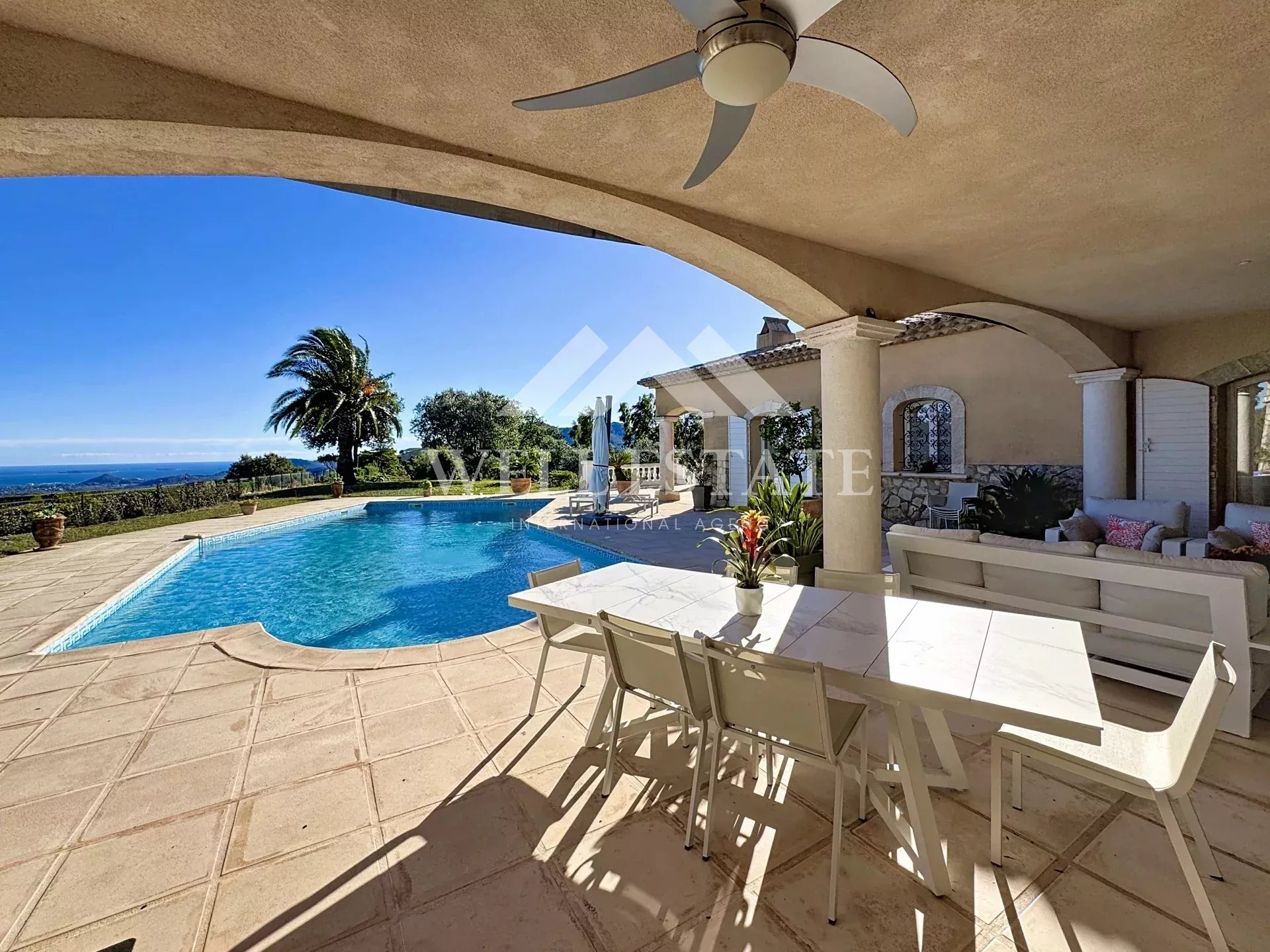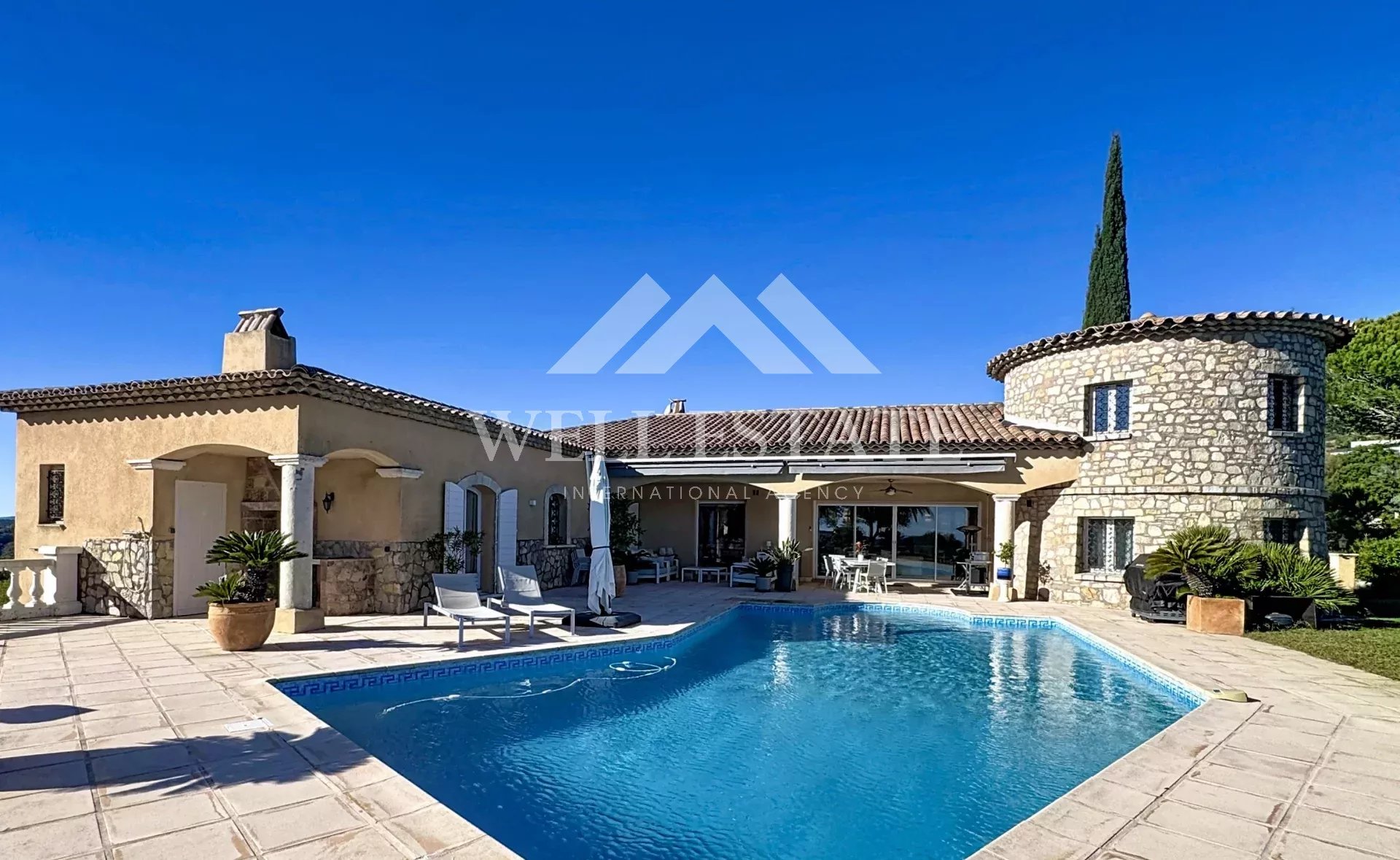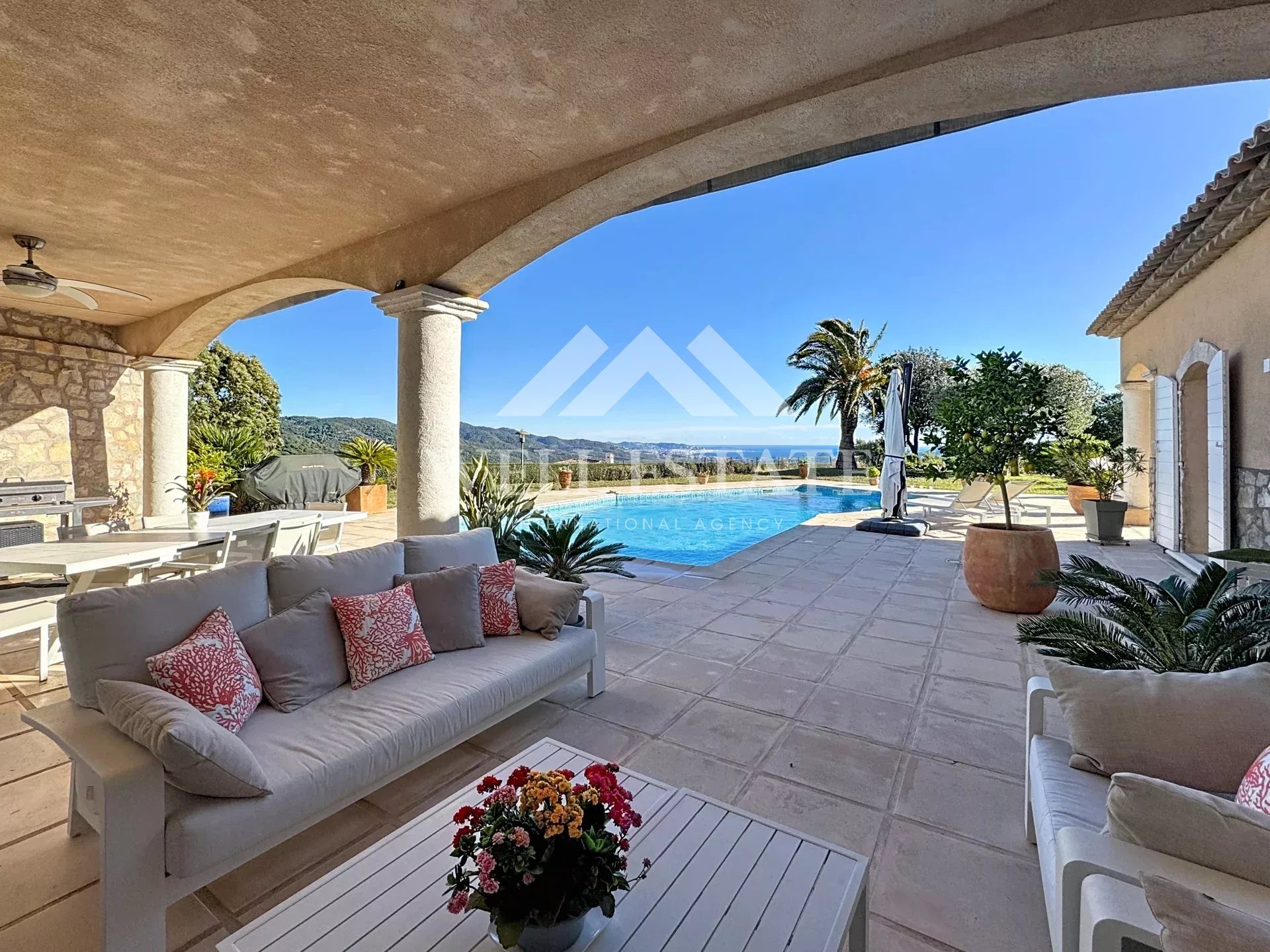 Ref. 86471315 - Dans un domaine fermé recherché, facilement accessible depuis l’autoroute et les principaux axes routiers, cette superbe villa provençale en position dominante bénéficie d’une vue mer panoramique exceptionnelle à 360°, embrassant la baie de Cannes, les îles de Lérins, le massif de l’Estérel et les pré-Alpes du Sud.